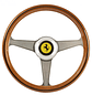 Diseñada con materiales de máxima calidad que incluyen un robusto armazón metálico (con ambos lados cubiertos por un acabado en madera genuina), un logotipo cromado auténtico y una atractiva placa frontal metálica, esta suntuosa réplica a escala 8:10 mide 33 cm de diámetro, para conseguir una inmersión total en la rica historia de la marca Ferrari